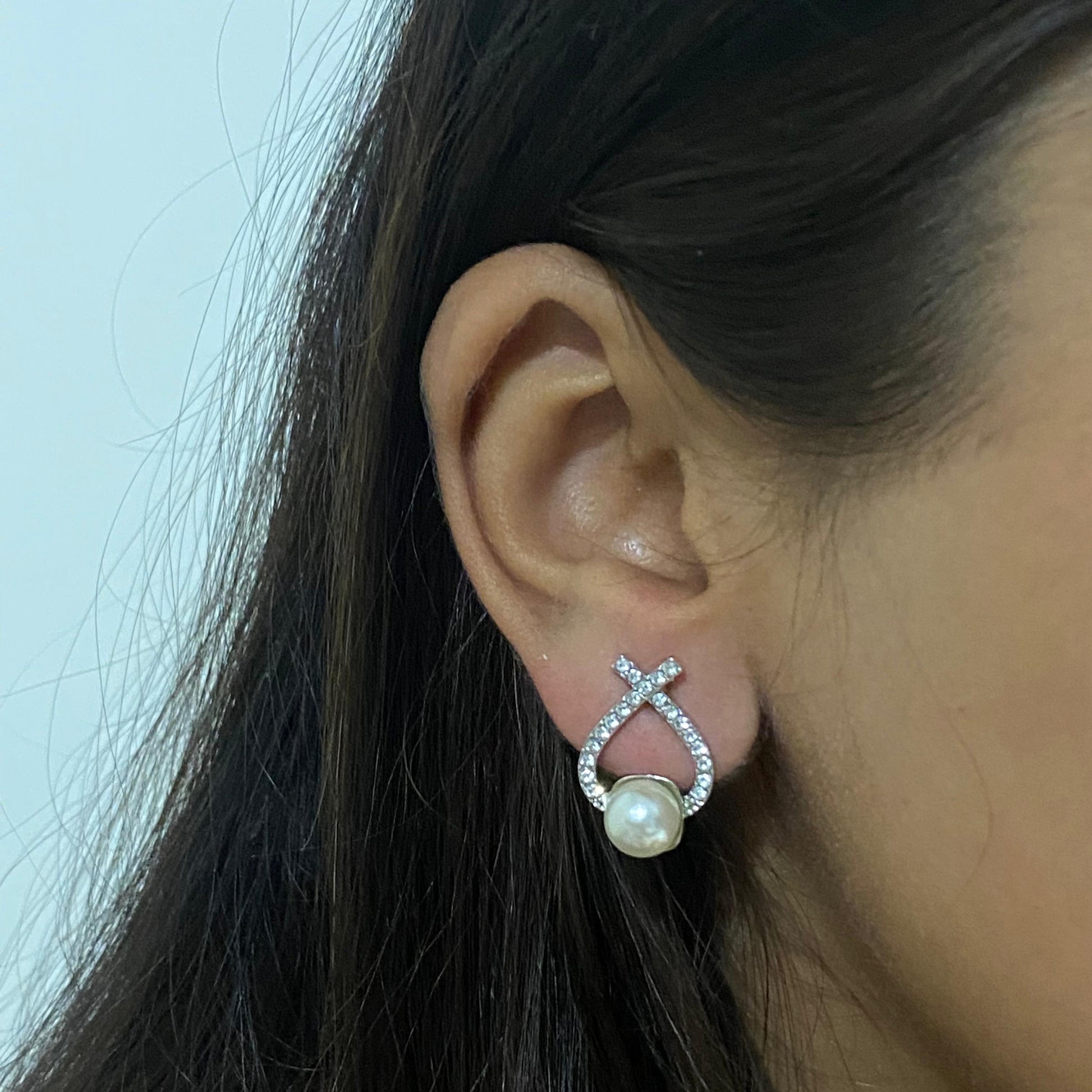 Add a touch of timeless sophistication with the Pearl Whisper Loops. These elegant earrings feature a graceful loop of sparkling crystals topped with a delicate crossover and finished with a luminous pearl at the base. Ideal for formal evenings, festive wear, or elevating everyday outfits with effortless charm.